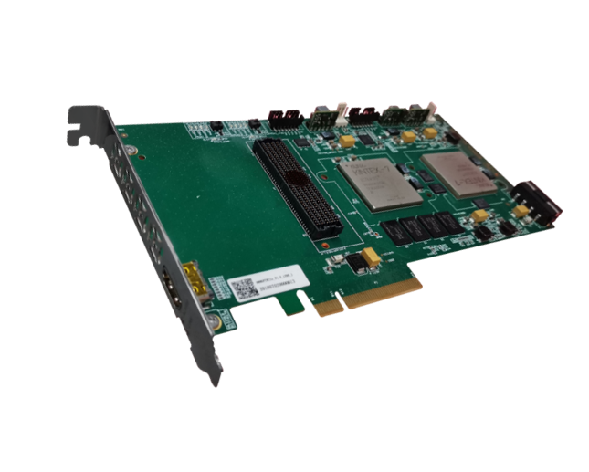 預(yù)處理PCIe卡:標(biāo)準(zhǔn)全高PCIe卡,板卡帶兩個(gè)FPGA,金手指支持x8 GEN2.0 PCIe接口;一塊FPGA進(jìn)行數(shù)據(jù)預(yù)處理,一塊FPGA為用戶預(yù)留資源,提供接口進(jìn)行用戶邏輯開(kāi)發(fā)。