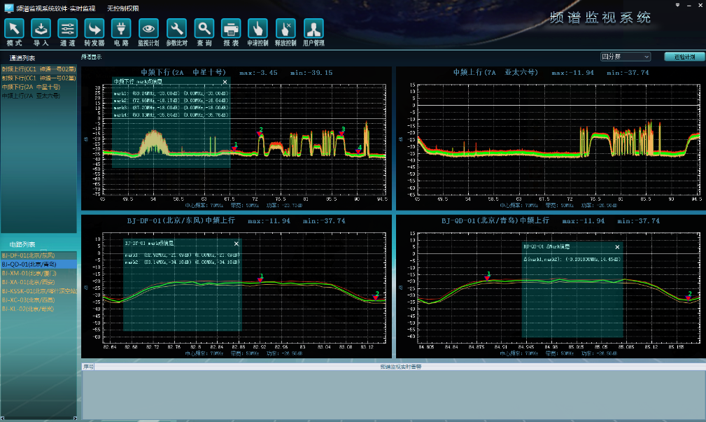 本系統(tǒng)是基于實時頻譜采集、智能信號處理以及網(wǎng)絡(luò)傳輸?shù)男乱淮噍d波智能監(jiān)視系統(tǒng)。該系統(tǒng)能夠?qū)崿F(xiàn)地面站的365*24小時連續(xù)自動化智能監(jiān)測,具備友好的人機界面使得操作與使用更加簡便,算法分析精度高、運行穩(wěn)定可靠,同時該系統(tǒng)具備較強的兼容性和擴展性,能夠適用于各類型衛(wèi)星通信站。